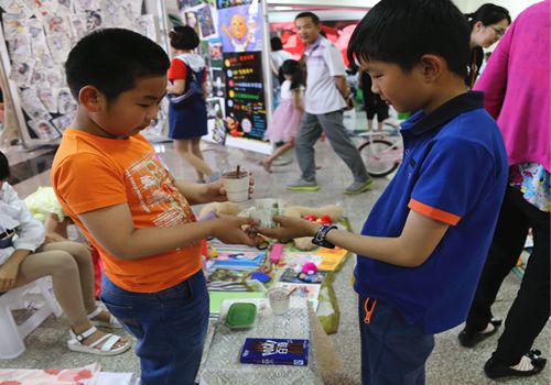 3、跳蚤市场以售卖、交换等方式进行,提前制作好自己的摊位牌。家长可以和孩子共同参与,提倡有创意的广告语;